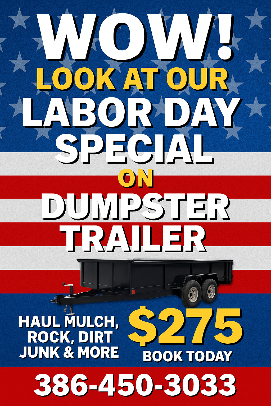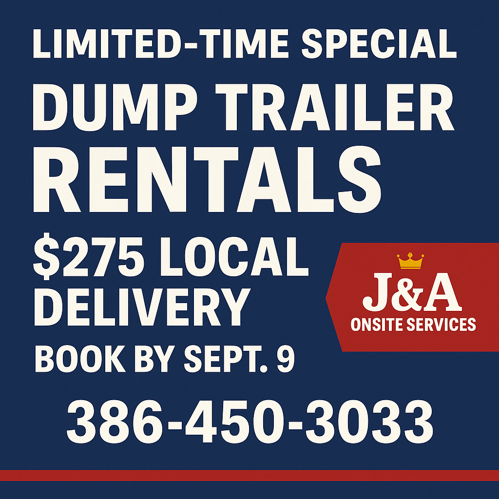 Are you looking for a reliable solution for your cleanup needs in Volusia County, FL? J&A Onsite Services offers 15-yard dump trailer rentals that make your junk removal, home cleanouts, small remodels, yard debris, roofing tear-offs, and property turnovers a breeze. With our fast delivery service, you can have a dump trailer at your location when you need it. We handle the hauling, so you can focus on your project. Our transparent pricing includes a $275 base delivery fee for local areas, with disposal costs calculated by weight.